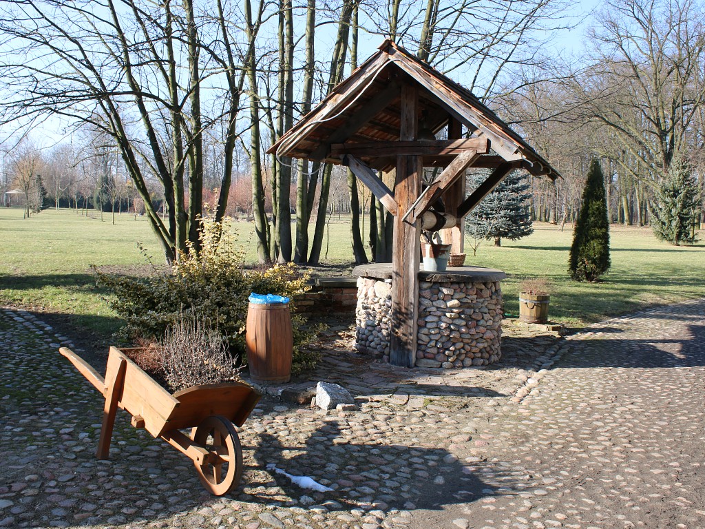 Zabytkowy dwór oraz zabudowania po dworskie otula zabytkowy park utworzony na dwóch usypanych tarasach ziemnych, przeciętych wąwozem nad którym znajduje się drewniany mostek łączący obie części parku. Park podworski i dwór położony jest na wysokości około 80 m.n.p.m. Szatę roślinną parku stanowią 3 grupy roślin: